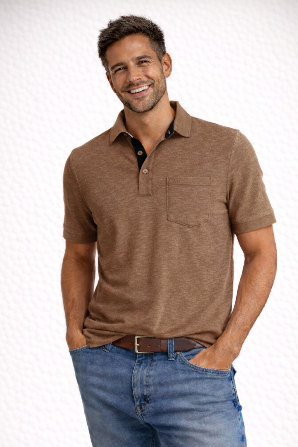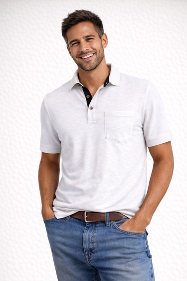 So super soft and feels good is our garment dyed Polo with trim. Looks fabulous with denim, khakis or whites. Special treatment. Hand or machine was cold, lay flat to dry and go!