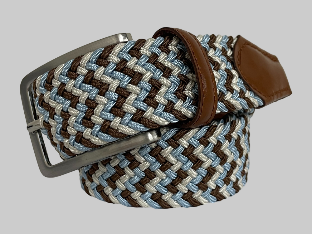 Brown & Lt Blue Braided Stretch Belt With Brown Genuine Leather Tipping