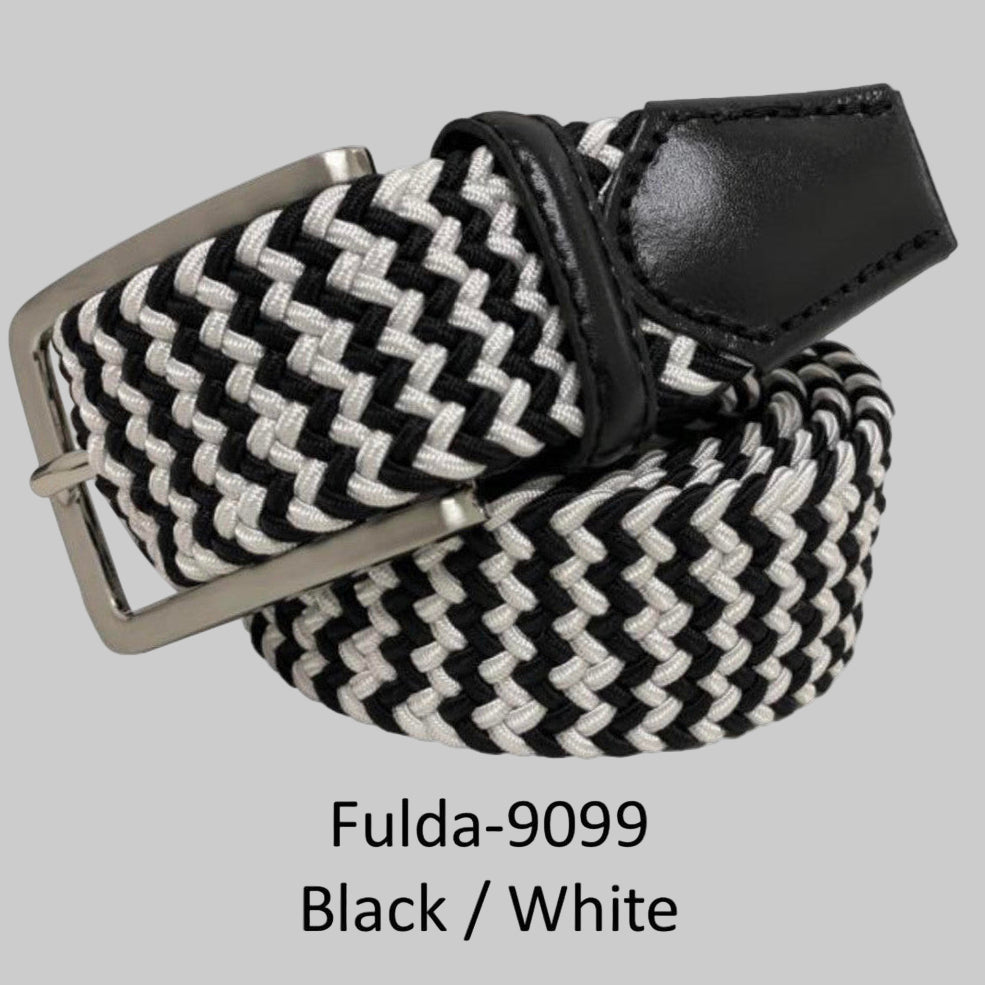 Made in Germany Compliment your Jeans or Trousers with our awesome stretch braided belt. Comfort is King. Black & White Braided With Black Genuine Leather Tipping Stretch Width 35 mm Order 1 size greater than pant size. Made in Germany