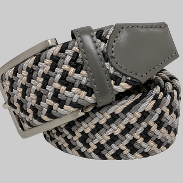 Made in Germany Compliment your Jeans or Trousers with our awesome stretch braided belt. Comfort is King. Taupe & Black, Grey Braided w/ Charcoal Genuine Leather Stretch Width 35 mm Order 1 size greater than pant size. Made in Germany
