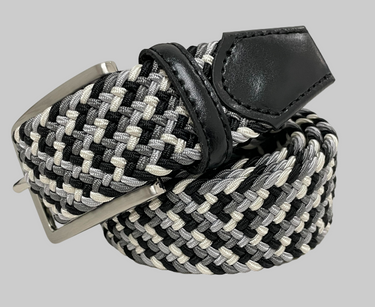 Grey/Eggshell/Black Braided Stretch Belt with Black Genuine Leather