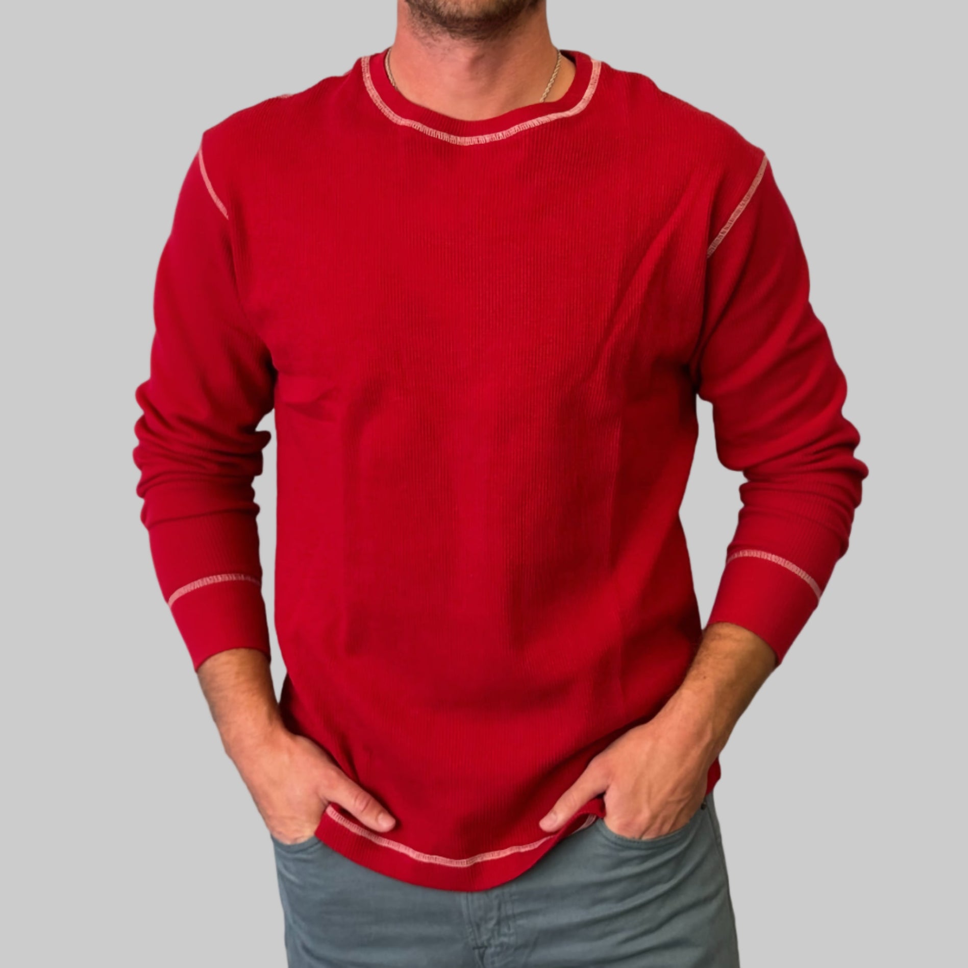 $98.00You will love our Lightweight thermal wardrobe staple. Carefree and casual to wear with your favorite denim day or night. It's an effortless fashion statement. Super soft with contrast stitching details. You will never want to take it off!