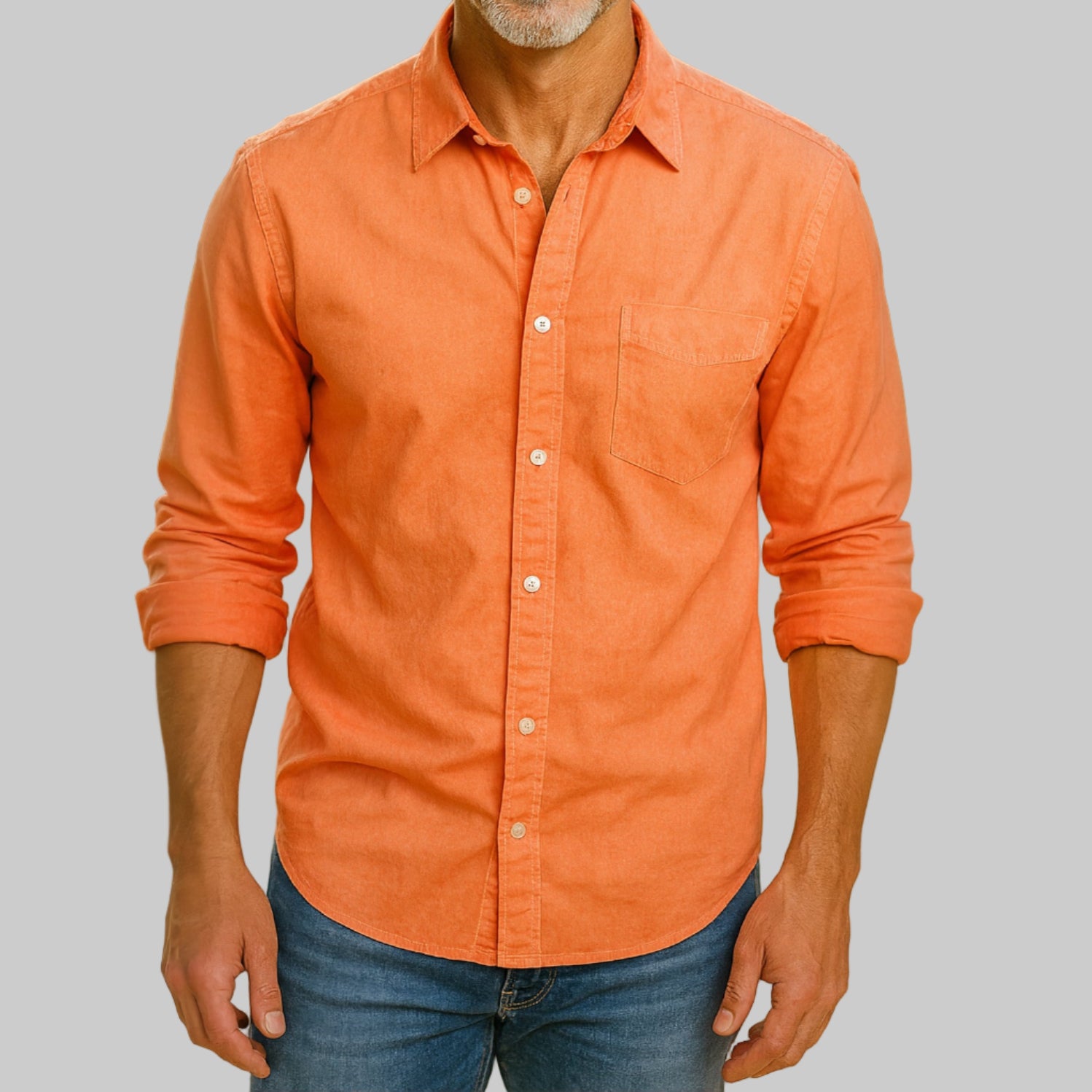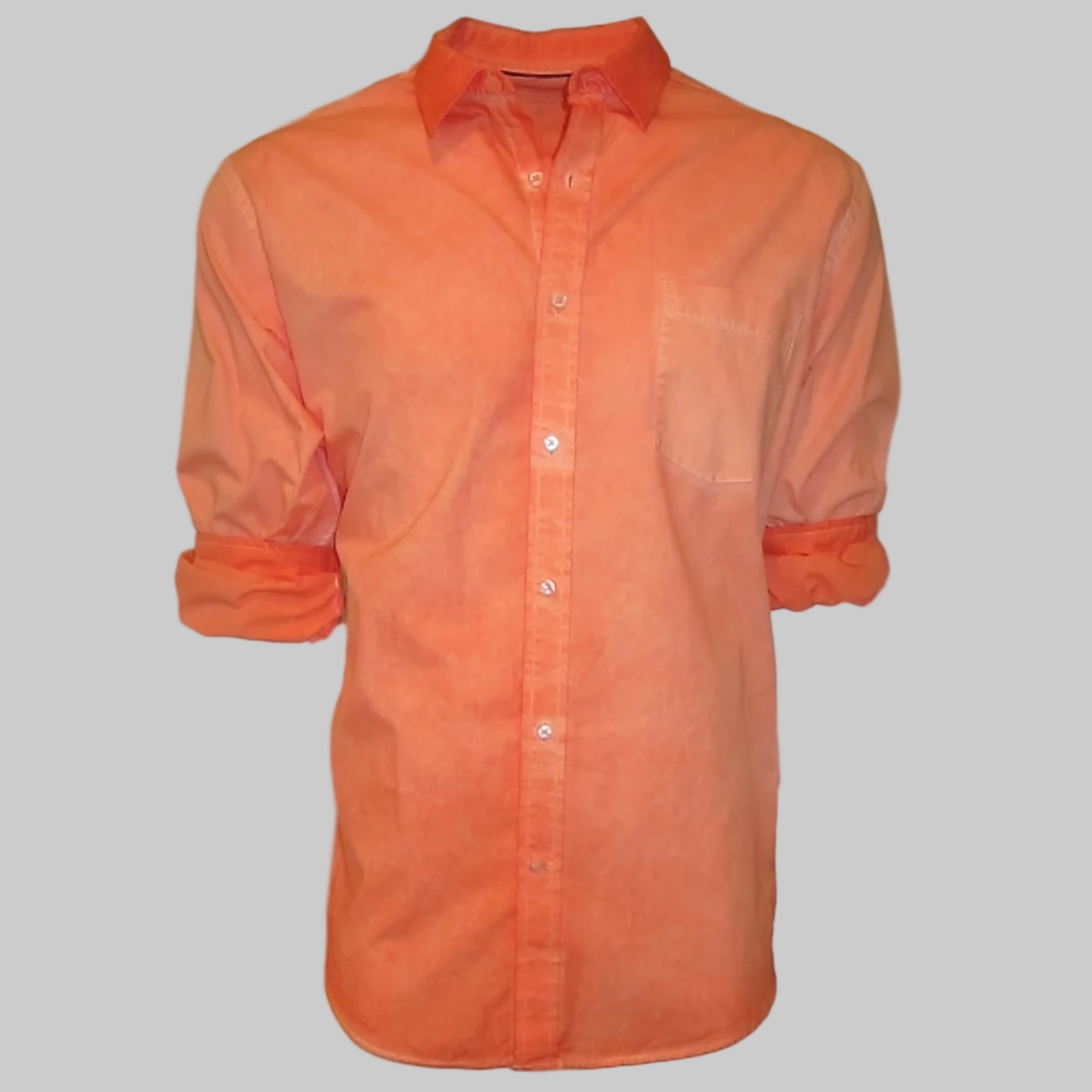 Our favorite shades of tangerine and orange come together with a very special Garment dye wash making this gem a perfect companion with denims and khakis.