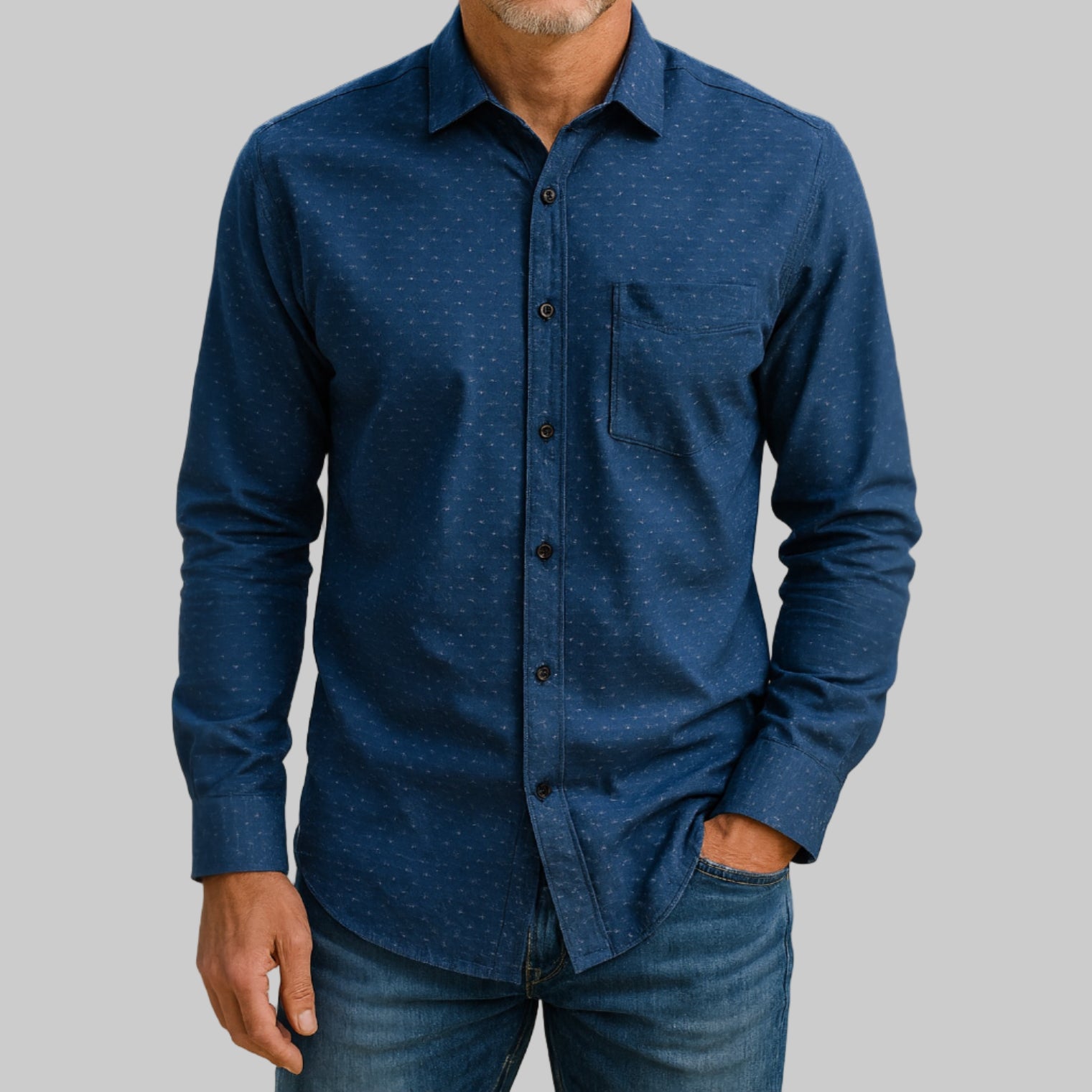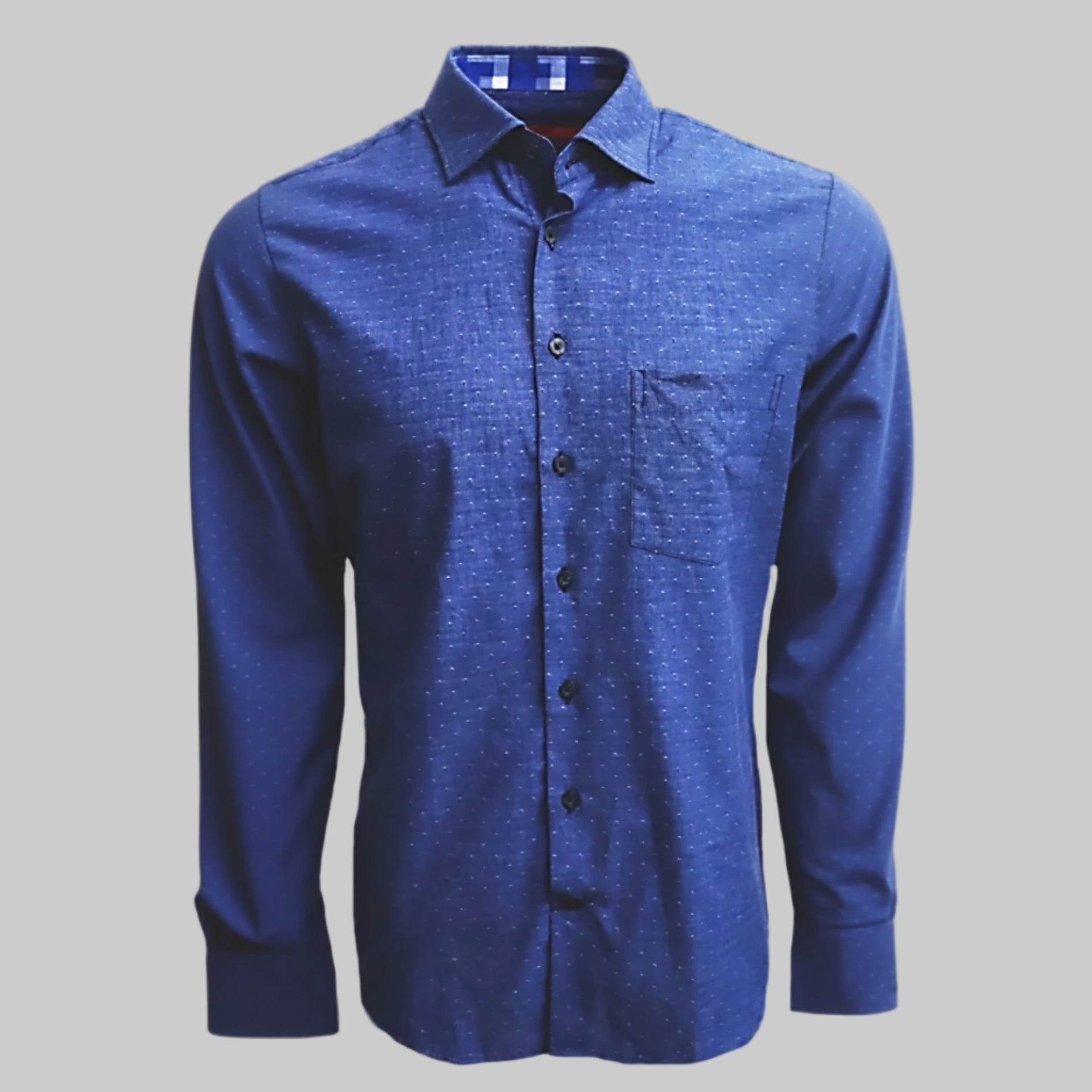 Super soft Pima Cotton in a rich denim blue with a mini tone on tone pattern.