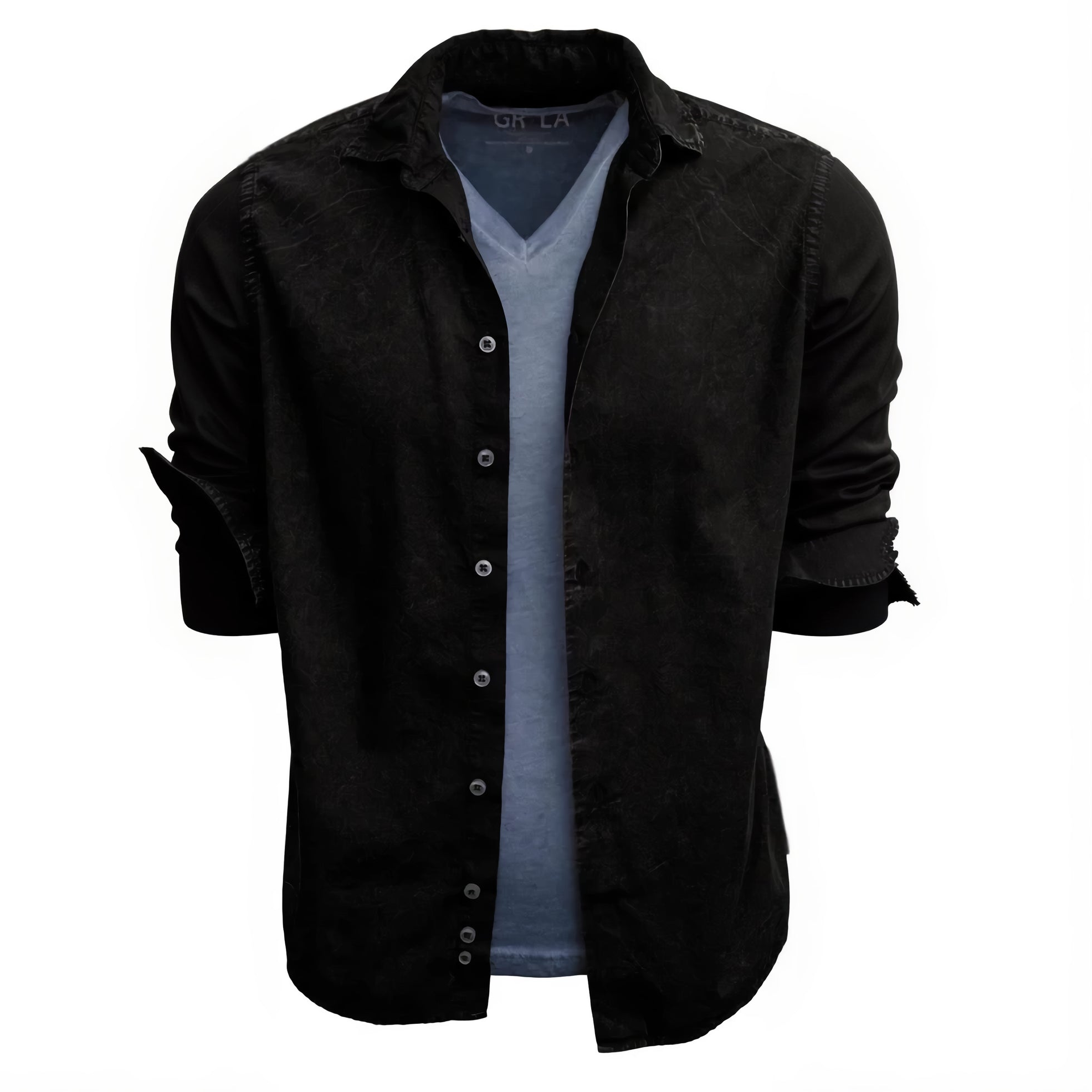 Raising the bar in special washes and dying,the shirt has been curated with a very special chemical free wash and dye creating a stunning, eye-catching shade of charcoal grey Looks fantastic on its own or open with tee as an overshirt.