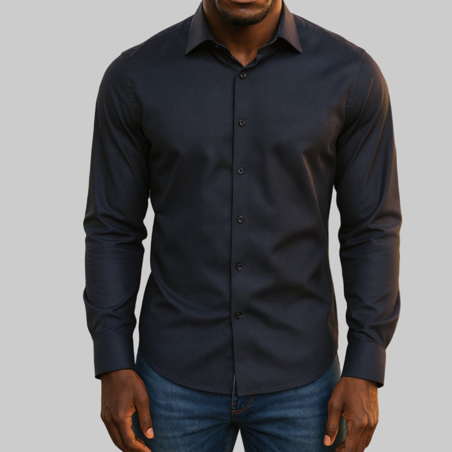 For your business wardrobe or elegant event our upscale fashion melange shirt is it. A very rich charcoal and black melange makes this a true companion with your blacks and greys.