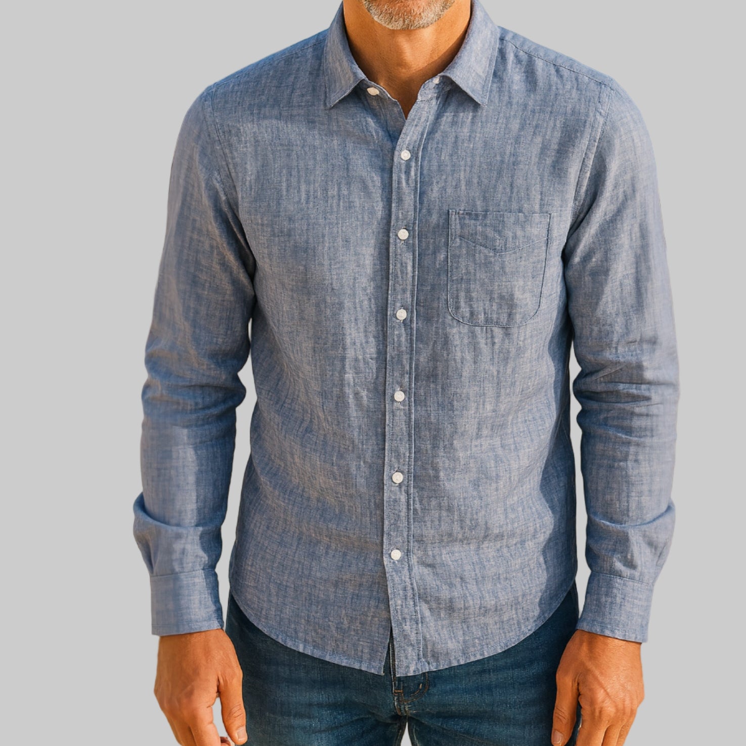 Lux Linen Cape Cod 25016 Long Sleeve Denim Blue Linen