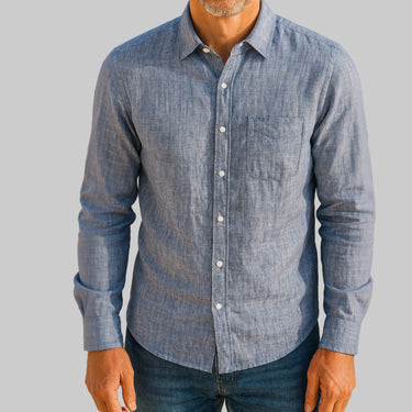 Perfect for warm weather our Long Sleeves Garment Dyed Linen Shirts in a beautiful classic denim blue.