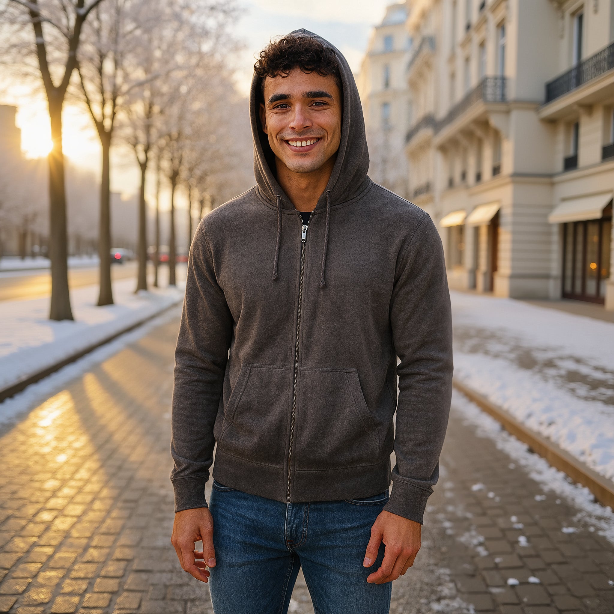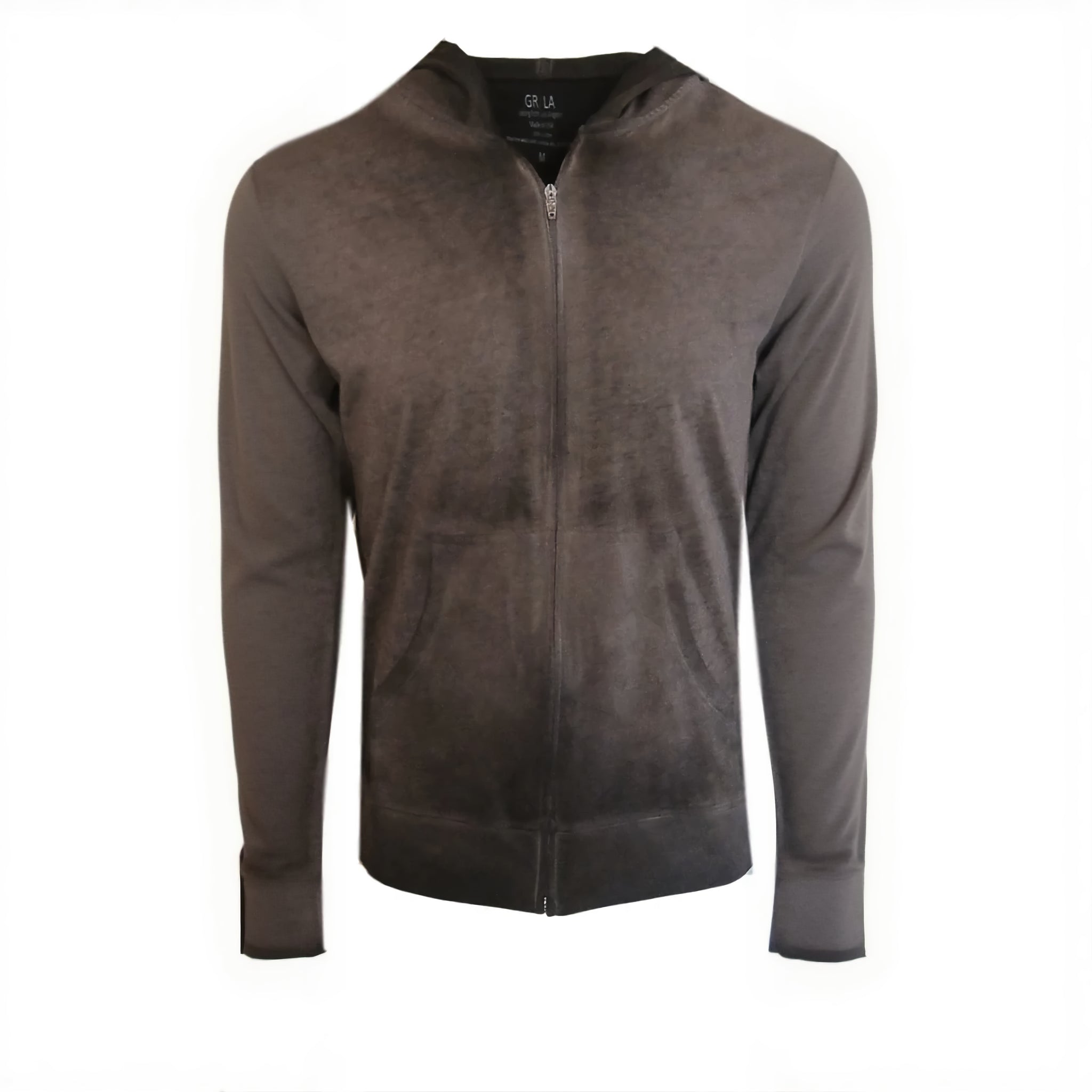 Men's Brushed Cotton Full Zip Hoodie, GRLA H COFFEE 8067