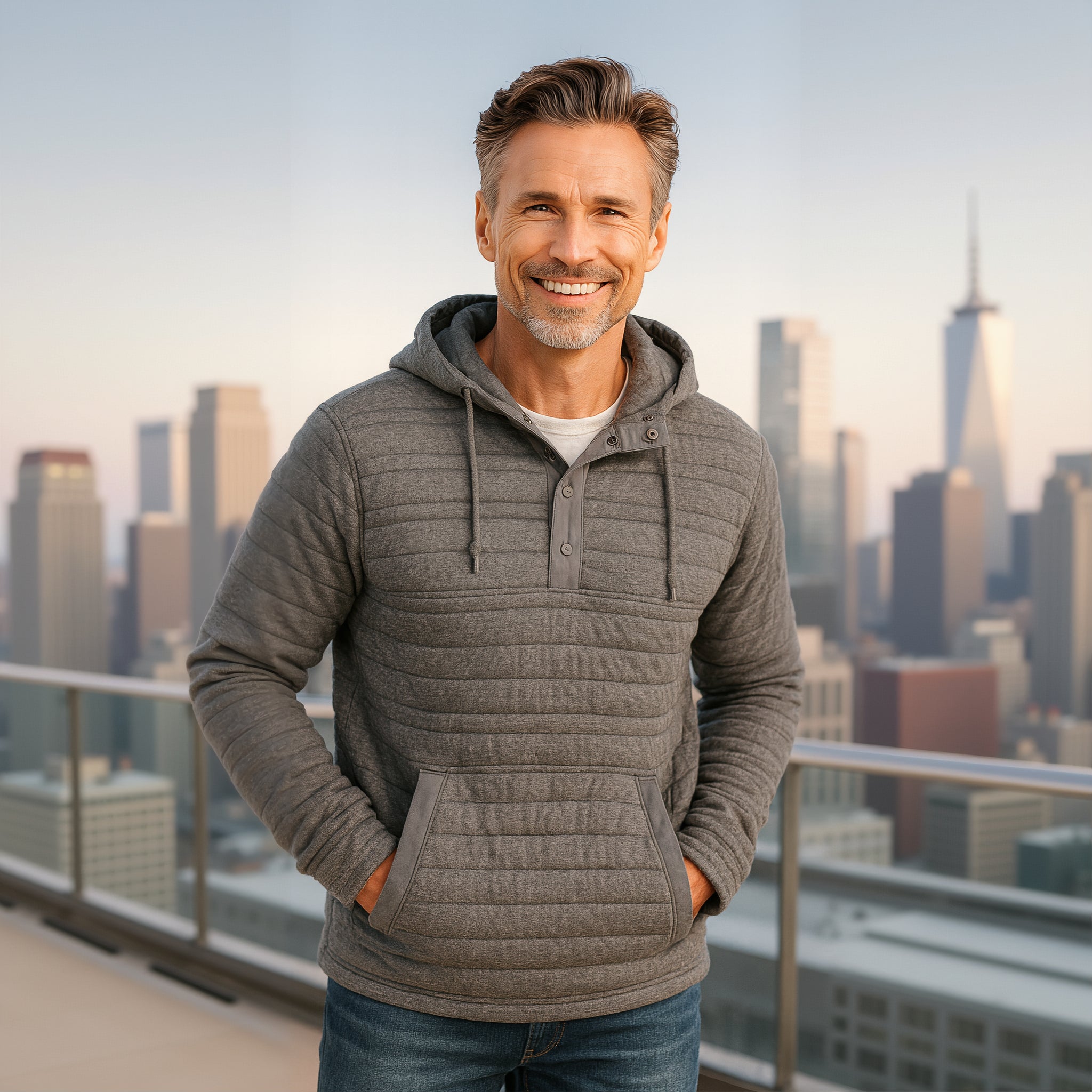 PURE COMFORT PULLOVER COTTON QUILTED HOODIE