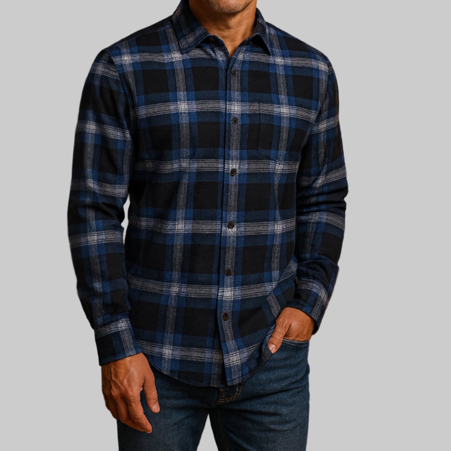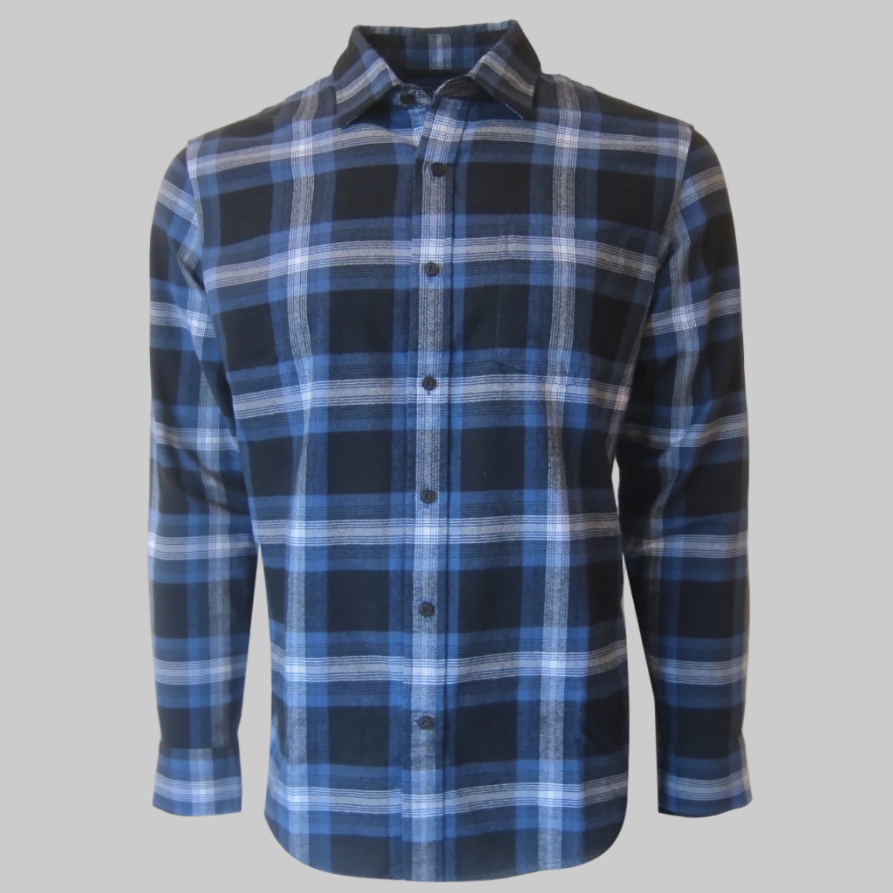$145.00Soft flannel in Navy Royal plaid, is great alone or as a over shirt worn open.