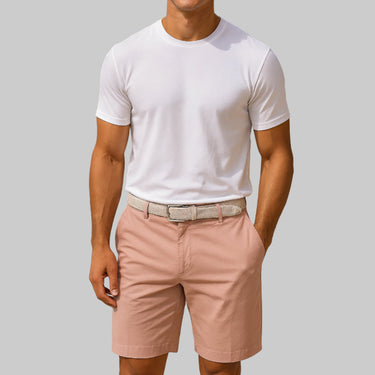 MENS CHINO SHORTS W/ STRETCH-Oxford-Salmon-SH-3417-Inseam 9"
