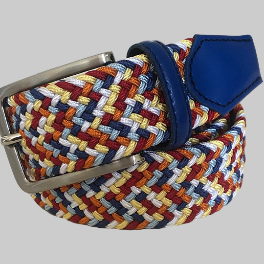 Made in Germany Compliment your Jeans or Trousers with our awesome stretch braided belt. Comfort is King. Orange multi Braided With Royal Genuine Leather Tipping Stretch Width 35 mm Order 1 size greater than pant size. Made in Germany