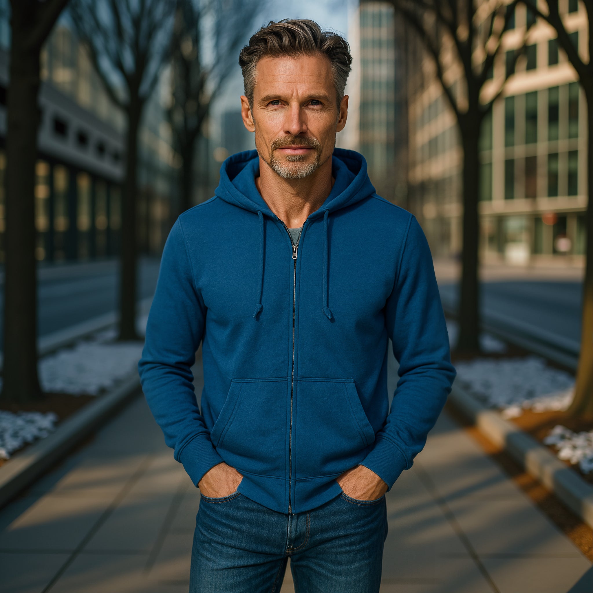 $125.00Comfort is King! Indigo blue full zip hoodie, to pair with shorts, denim, khakis, whites and shorts.